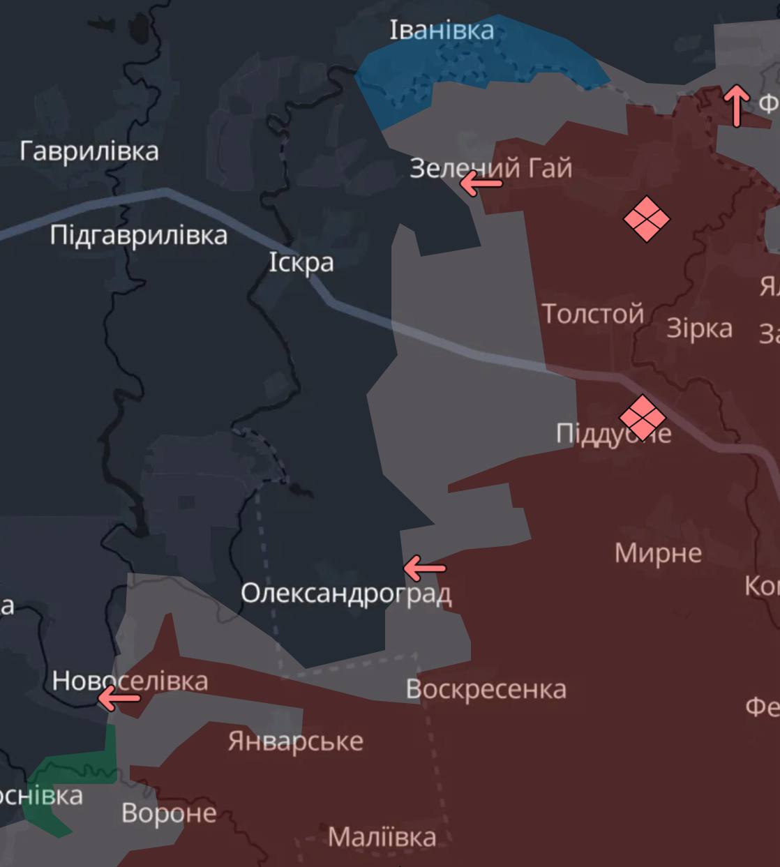 Ворог дев’ять разів намагався прорвати оборону наших захисників у районах населених пунктів Олександроград, Соснівка, Солодке, Привільне, Красногірське та у бік Добропілля. Одне боєзіткнення триває.