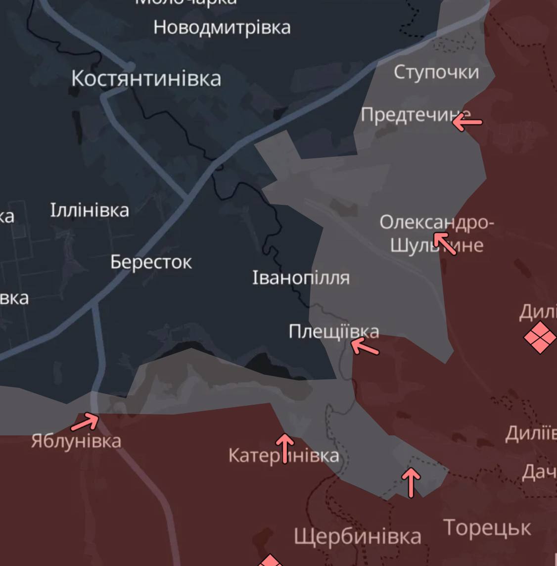 16 разів росіяни йшли в наступ на позиції українських підрозділів у районах населених пунктів Олександро-Шультине, Клебан-Бик, Плещіївка, Русин Яр та у бік Костянтинівки і Софіївки.