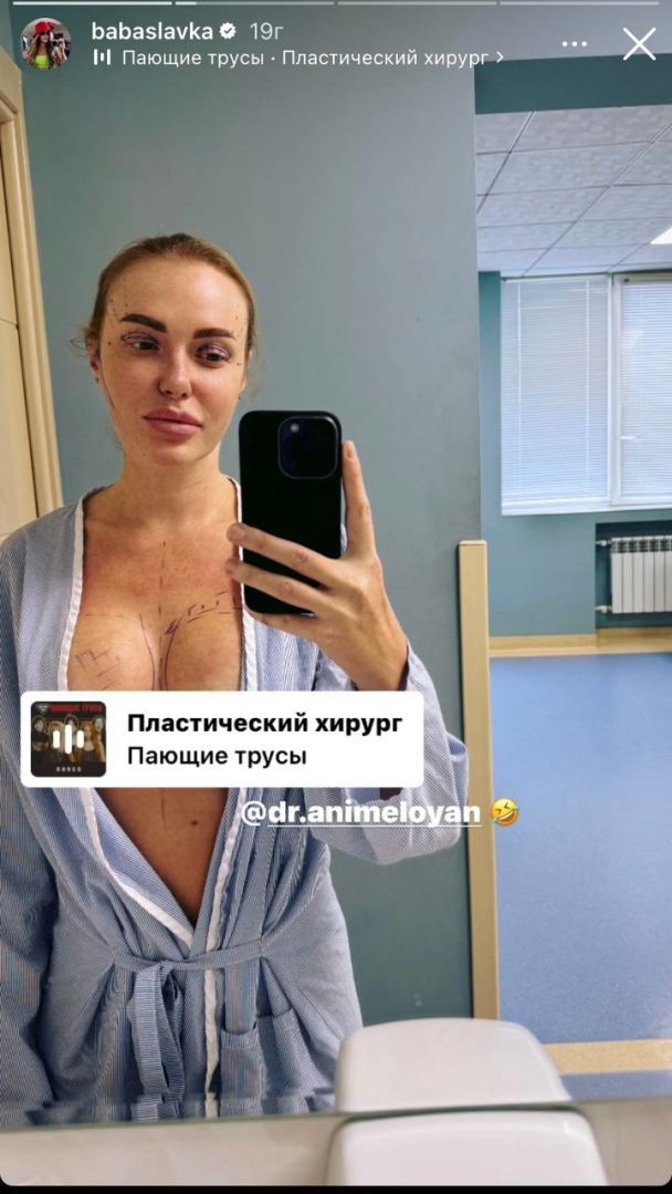 "Я вирішила, що якщо вже наркоз, то нехай крім грудей буде ще блефаропластика, грудки Біша, ендоскопічна підтяжка брів, нитки, ін'єкції та ліпосакція колін. Чому ні? Ще купа хворобливих косметичних маніпуляцій, все одно наркоз", - поділилася Слава.