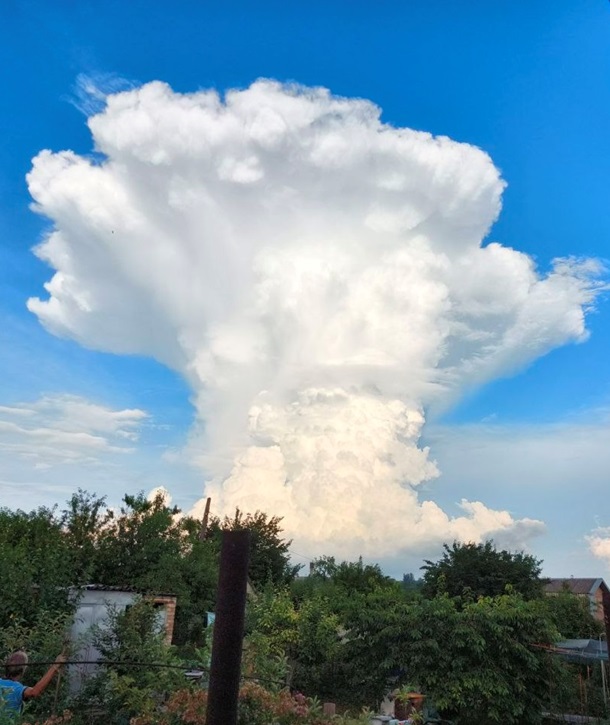 У Запорізькому обласному центрі з гідрометеорології розповили, що 17 червня у небі над містом спостерігалася купчасто-дощова хмара з ковадлом, яка мала вигляд "гриба".