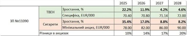 - поступове підвищення до 2028 року ставки акцизного податку з сигарет, з одночасним еквівалентним підвищенням таких ставок на тютюн та промислові замінники тютюну;