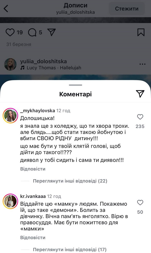 Низка коментаторів все ж таки вважають, що жінка мала психічний розлад чи захворювання, проте інші звертають увагу на повідомлення поліції, де йдеться про відсутність Юлії на обліку в спеціалізованих медичних закладах.
