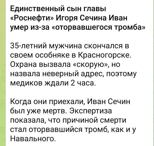 Очередной "отрыв тромба": умер сын руководителя Роснефти