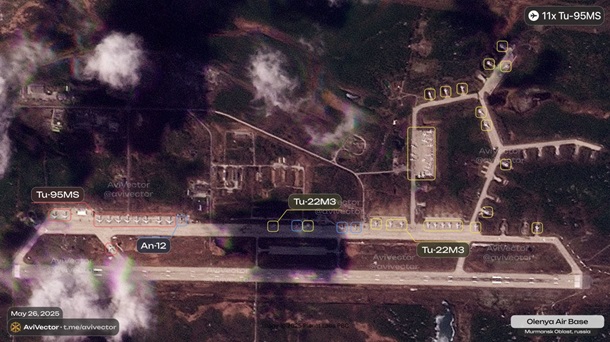 В то же время сообщается, что после проведения нового массированного ракетного удара по Украине 26 мая на Энгельсе село одновременно семь Ту-95МС, еще один самолет этого типа полетел на аэродром Оленья.