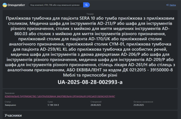 Одесский облсовет переплатил миллионы за медицинскую мебель: след ведёт к экс-офицеру СБУ