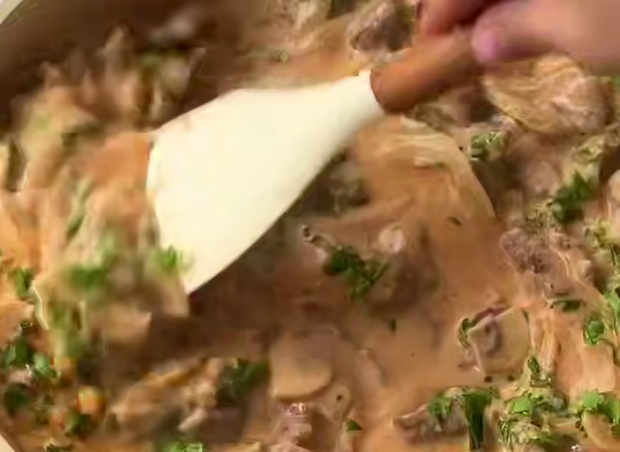 Бефстроганов, который тает во рту: нежная говядина в сливочно-грибном соусе, рецепт для пюрешки