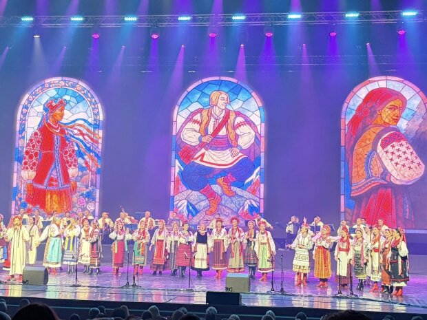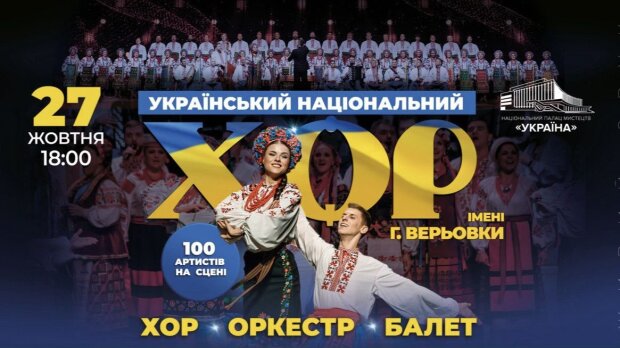 "Патриотически, патетически, символически, феерически, фантастически, динамично, и довольно лаконично - во дворце Украина 18 октября выступил легендарный Национальный заслуженный академический украинский народный хор имени Григория Веревки. Удивительные аутентичные костюмы, сильные голоса, музыканты-виртуозный, виджеинг - все это сегодняшний хор Веревки, основанный еще во время Второй мировой войны, 11 сентября 1943 года в Харькове.