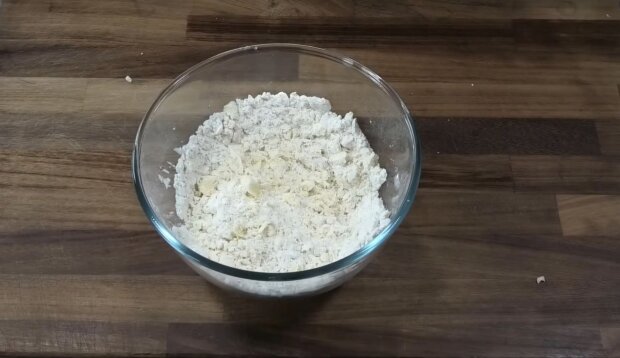 Добавьте хорошо охлажденное масло и замесите тесто кухонным комбайном. Также подойдет обычный нож.