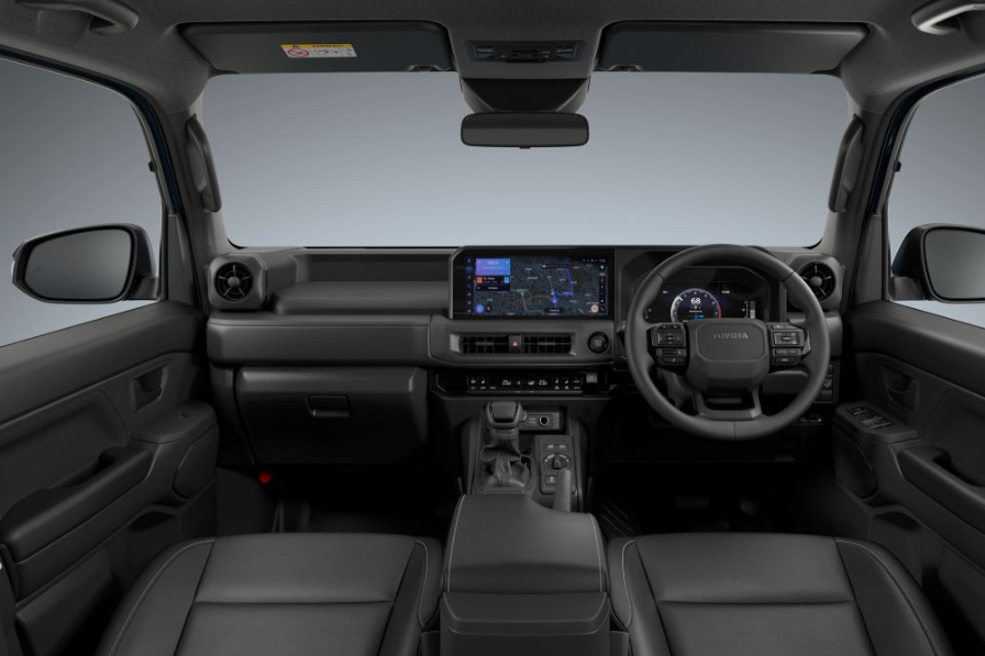 Что в салонеКак и внешность, салон нового Land Cruiser FJ выполнен в угловатой манере. Так, установлен трехспицевый руль с большим количеством физических кнопок и большой рычаг коробки передач. Верхний ярус передней панели занимает просторная полка.