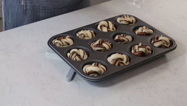 Выложите подготовленные рулетики в форму для мафинов и оставьте, накрыв, на час или пока они не увеличатся вдвое.