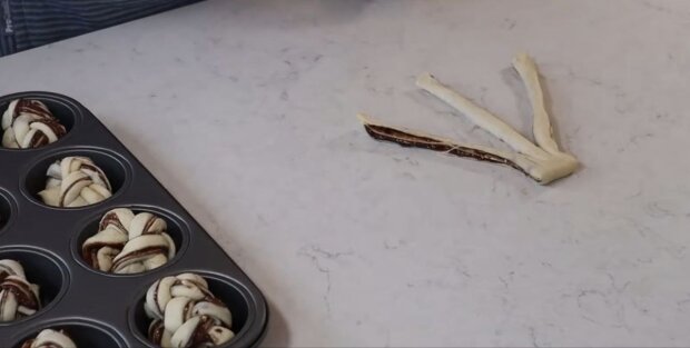 Эти плетенные булочки сладкие и пушистые. Вы можете использовать для их приготовления свою любимую шоколадную пасту, например "Нутеллу".
