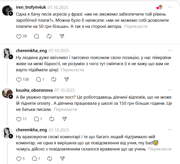 Комментаторы начали защищать родителей и писать, что для кого-то 50 гривен – это тоже деньги, и что это не смешная ситуация.