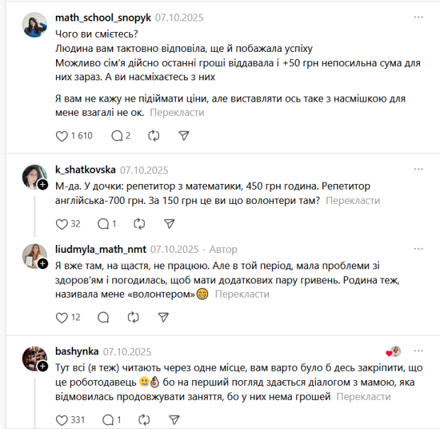 Спор за 50 гривен: цена репетиторки вызвала бурную дискуссию
