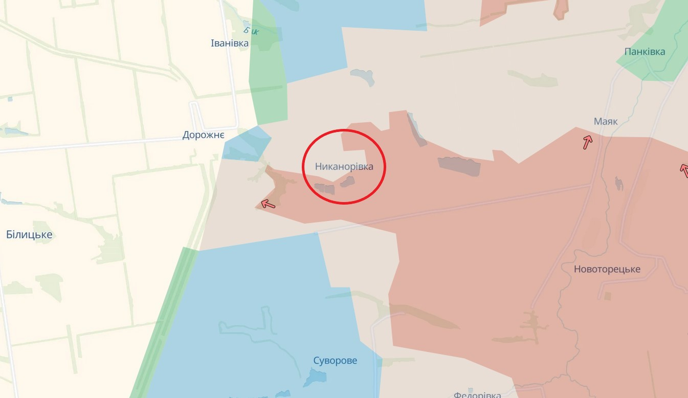 Также DeepState уточнил ситуацию в Никаноровке, что в Донецкой области. Согласно карте, сейчас село находится в полуокружении россиян.