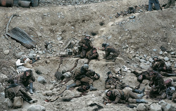 Снимок очень похож на документальный - настолько он реалистичен, что трудно поверить, что это постановка. Сюжет переносит в 1986 год, в Афганистан, где воссоздана сцена засады советских солдат. Для съемки художник пригласил десятки актеров, которых тщательно загримировали и одели в военную форму. Благодаря этому фотография сохранила историческую подлинность и передала атмосферу военного времени.
