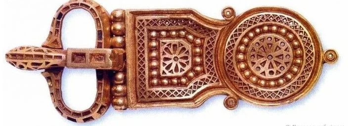 Следующий в нашем списке клад — уникальный золотой гребень с воинами из кургана Солоха, что в 10 км от современного Энергодара. Археологи нашли там также тарелку -фиала и меч в золотой оправе.