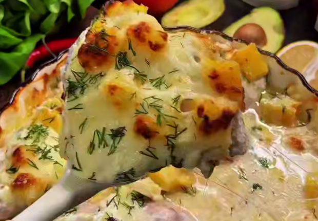 Минимум усилий, а результат — ресторанный: мясо получается мягким, пропитанным соусом, с лёгкой сладостью тропических фруктов и аппетитной сырной корочкой.