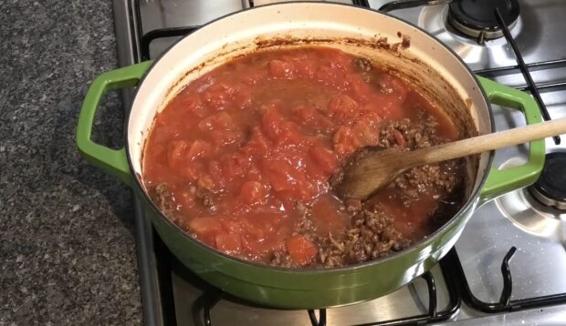 Добавьте жареную баранину в соус и перемешайте. Затем добавьте помидоры и около 300 мл воды. Тушите на слабом огне полчаса. Приправьте по вкусу солью и перцем.