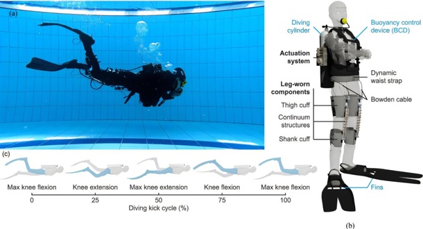 Новое устройство это двусторонний тросовый экзоскелет для коленей, который в реальном времени добавляет вспомогательный крутящий момент во время ударов ногами, синхронизируясь с естественными движениями дайвера с помощью специальных датчиков движения и сенсоров силы. Во время тестирования на шести опытных дайверах экзоскелет продемонстрировал высокую эффективность. Исследователи зафиксировали снижение потребления воздуха почти на четверть, а также заметное уменьшение нагрузки на квадрицепсы и икроножные мышцы. При этом движения оставались естественными, а дайверы быстро адаптировались к помощи устройства.