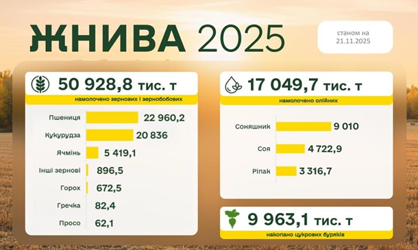 Напомним, украинские аграрии по состоянию на 24 октября намолотили 37,560 млн тонн зерновых и зернобобовых культур с 8,400 млн га, что составляет 73% площадей, засеянных этими культурами.
