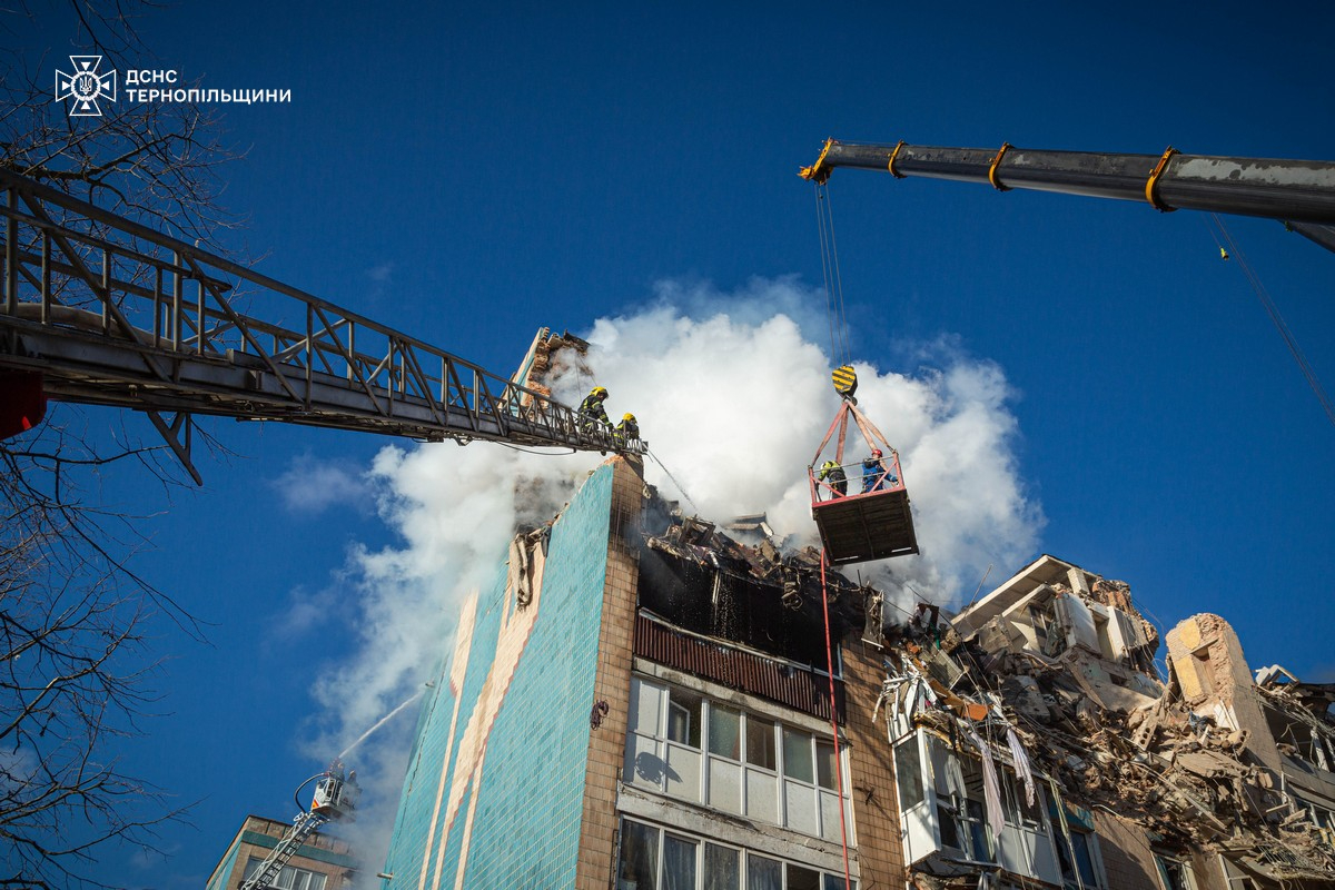 Основные аварийно-спасательные и поисковые работы в Тернополе проводились на двух локациях. На одной из них многоквартирный дом подвергся значительным разрушениям, часть людей была под завалами и заблокирована в квартирах.