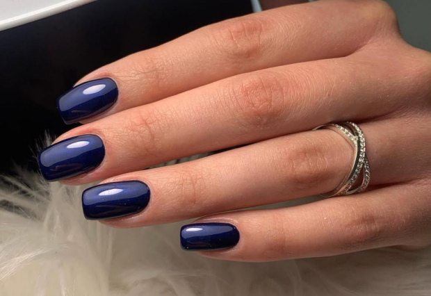 Тёмно-синий оттенок с эффектом жидкого стекла — абсолютный must-have. Добавьте один чёрный бархатный ноготь с золотыми вкраплениями. Этот дизайн усиливает загадочность, магнетизм и помогает притянуть скрытые финансовые источники.