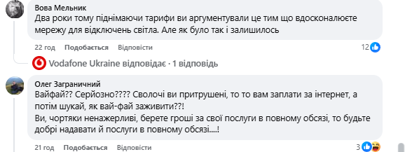 "Берете деньги за свои услуги в полном объеме, то будьте хороши предоставлять и услуги в полном объеме", "Два года назад поднимая тарифы вы аргументировали это тем, что совершенствуете сеть для отключений света. Но как было так и осталось", "Ваш интернет исчезает вместе со светом", - возмутительно отреагировали абоненты.