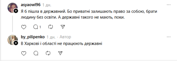 Некоторые пользователи соцсети поддержали автора сообщения. Кто-то отметил, что лучше отдавать ребенка в государственный сад, потому что туда не берут людей без образования.