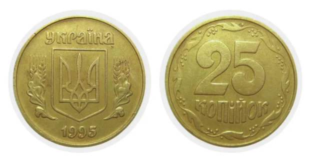 Так, 25 копеек 1995 года в зависимости от состояния могут стоить от 1 000 грн, но окончательная цена всегда зависит от сохранности и внешнего вида монеты.