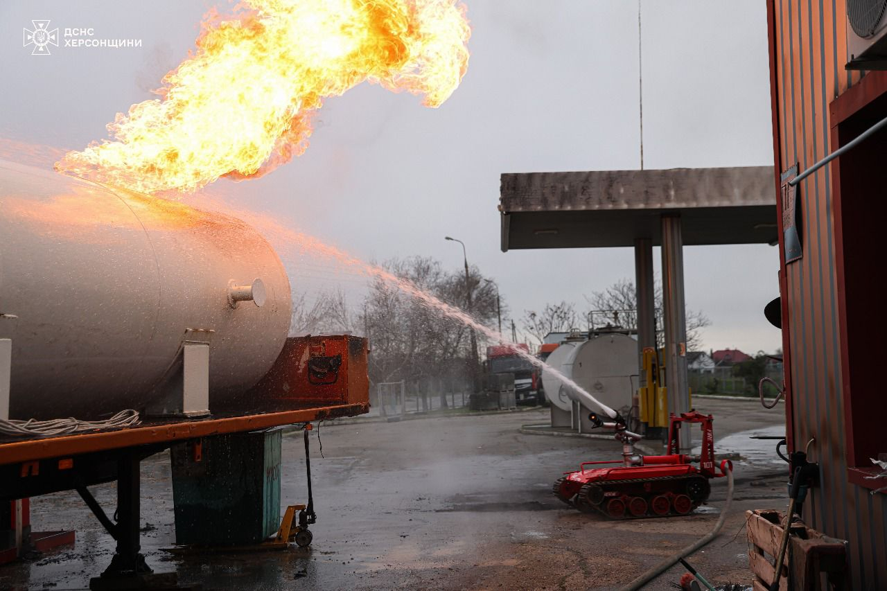 Оккупанты атаковали спасателей, которые тушили пожар на АЗС в Херсоне