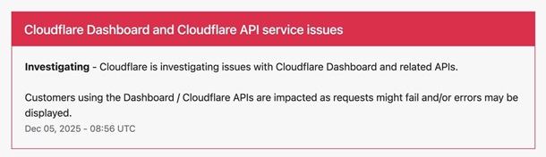 Из-за очередного сбоя в работе Cloudflare в пятницу, 5 декабря, не работают ряд интернет-сервисов и вебсайтов. Об этом свидетельствуют данные Downdetector.