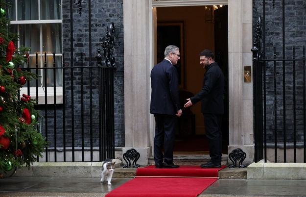 Затем Зеленский помахал рукой коту Ларри, который сидел у дверей, а затем вместе со Стармером они зашли в резиденцию.