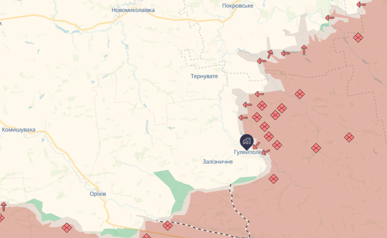 На Гуляйпольском, Ореховском и Александровском участках фронта фиксируют значительное обострение боевых действий. Самая сложная ситуация - вблизи Гуляйполя, где войска РФ пытаются перерезать логистические пути и окружить город.