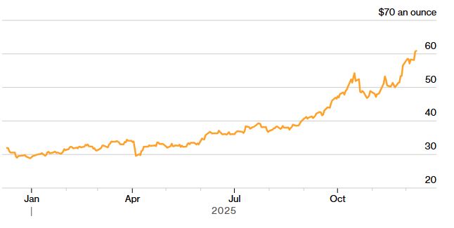 В этом году серебро подорожало более чем вдвое и выросло быстрее, чем золото. Цены резко пошли вверх после исторического дефицита металла в октябре. Хотя этот кризис ослаб, поскольку больше металла поступает в лондонские хранилища, ставки по займам остаются повышенными, что свидетельствует о продолжающемся сжатии.