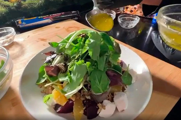 Салат из сырой свеклы, козьего сыра и апельсина с имбирной заправкой