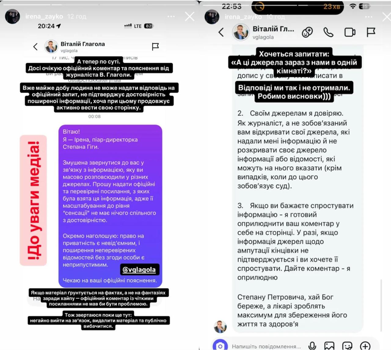 Об этом Ирэна Зайко написала в Instagram, опубликовав переписку с журналистом Виталием Глаголой, передает RegioNews.