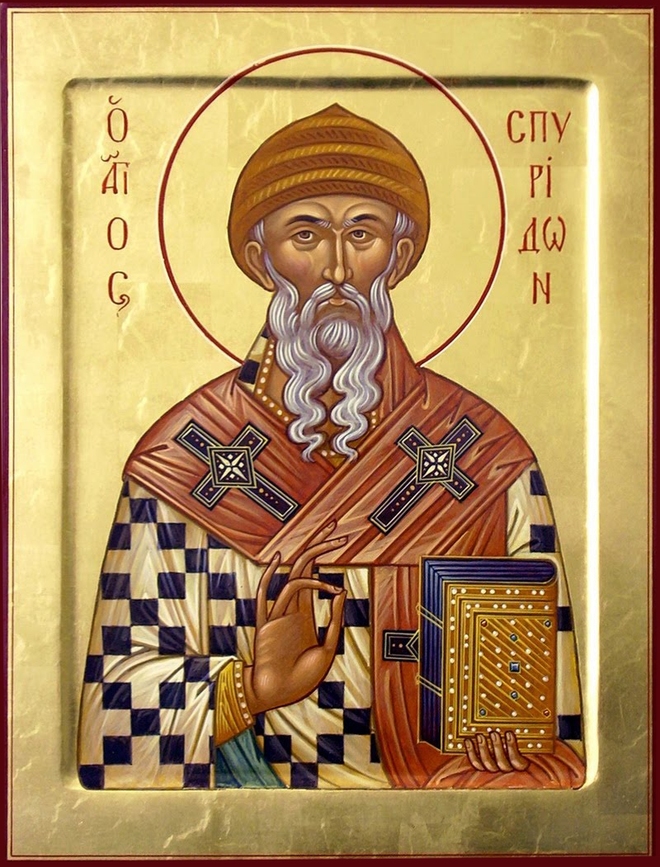Святитель Спиридон жил в III-IV веках на острове Кипр. Сначала он был простым пастухом, был женат и имел детей. Своей праведной жизнью, добротой и гостеприимством он заслужил уважение общества, и после смерти жены его избрали епископом города Тримифунт.