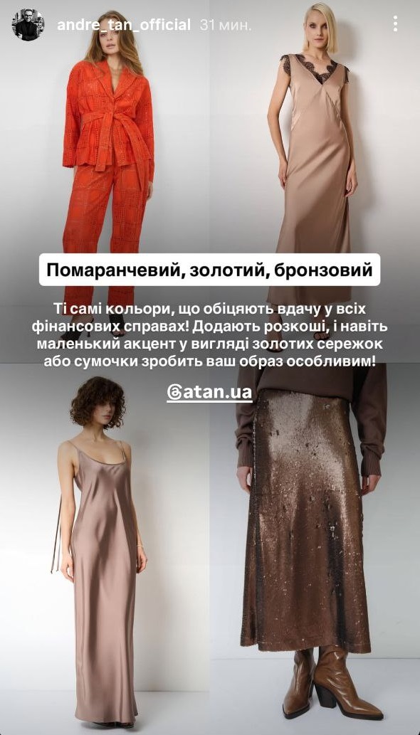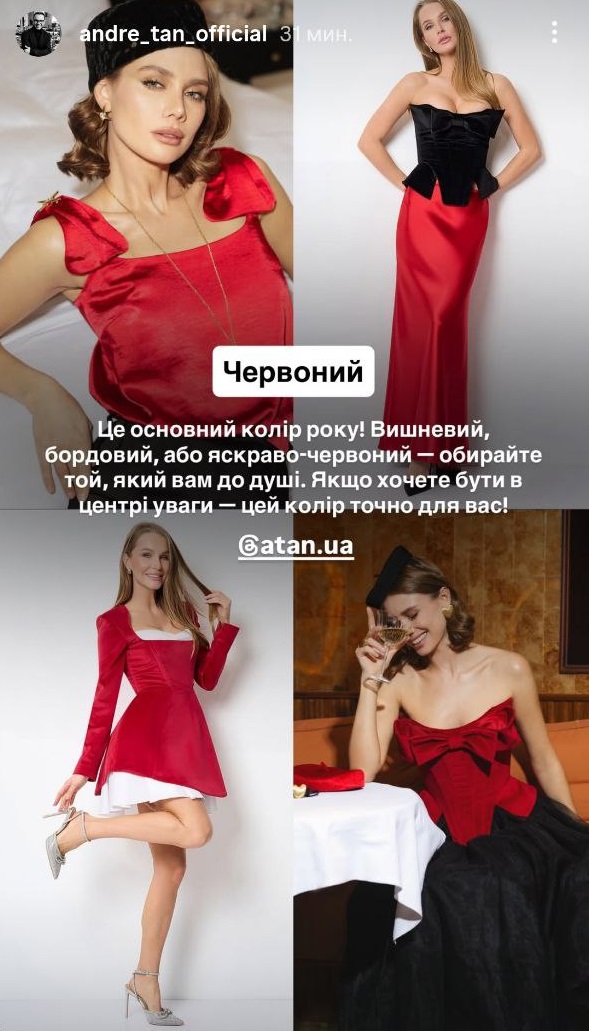 Украинский дизайнер Андре Тан раскрыл секрет идеального праздничного образа для Нового года 2026. Дизайнер назвал цвета, которые принесут удачу, гармонию и подчеркнут стиль, помогая почувствовать себя звездой вечера.
