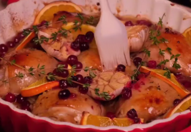 Рецепт новогодней курочки в апельсинах и клюкве: аромат праздника заполнит всю квартиру