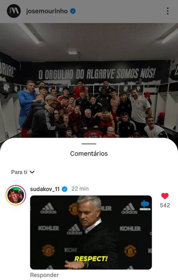 В комментариях появился Судаков, который прислал gif-файл с легендарным моментом, где Моуринью требовал от журналистов уважения.