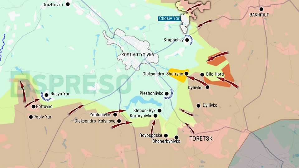 Ukraine Russia war live map, October 4-11, photo: EspresoKostiantynivka – front line is getting closerUkraine’s General Staff has officially renamed the Toretsk sector to Kostiantynivka, as intense fighting has long been centered around this city. The eastern front, stretching from Chasiv Yar to the outskirts of Toretsk, remains highly interdependent — a breakthrough by occupying Russian forces in one area could trigger a chain reaction in others. This week, Russian forces advanced from Kurdiumivka to Bila Hora and expanded the gray zone near Oleksandro-Shultyne. As a result, they managed to cross the Siverskyi Donets–Donbas canal at another point and enter the forest south of Stupochky. Meanwhile, in Stupochky, Ukrainian Defense Forces are holding the Bakhmut–Kostiantynivka highway and protecting the southern flank of Chasiv Yar’s defenders from a breakthrough. This section of the front has remained one of the most stable throughout the year, but the current chain of events could affect the entire defensive system in this area.On the other flank, Russian troops continue their assaults near Rusyn Yar, seeking to gain operational space that would allow them to advance toward Druzhkivka, encircle Kostiantynivka from three sides, and disrupt Ukrainian logistics. However, this week, the Ukrainian Armed Forces successfully maintained their defensive lines in this sector.