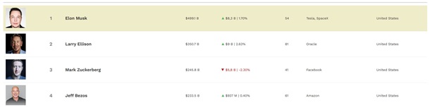 Однак, ситуація ще може змінитися, адже лише кілька ттижнів тому співзасновник Oracle Ларрі Еллісон, який наразі посідає другу сходинку, обігнав Маска і став найбагатшою людиною світу.