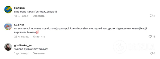Під постом у TikTok багато колег погодилися з Діаною. Одні написали, що збори — це, передусім, місце для конкретних питань, а не для «корпоративного тимбілдингу». Інші зауважили, що самі зазнають «іспанського сорому» від нав'язаних ігор на педагогічних курсах.