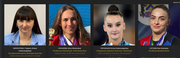Серед фегурантів також білоруська художня гімнастка Аліна Гарнасько - учасниця пропагандистського фестивалю Время наших побед, проведеного за дорученням самопроголошеного президента Білорусі Олександра Лукашенка. У 2025 році виступала на численних міжнародних змаганнях, зокрема в Болгарії, Німеччині та Португалії як "нейтральна спортсменка".