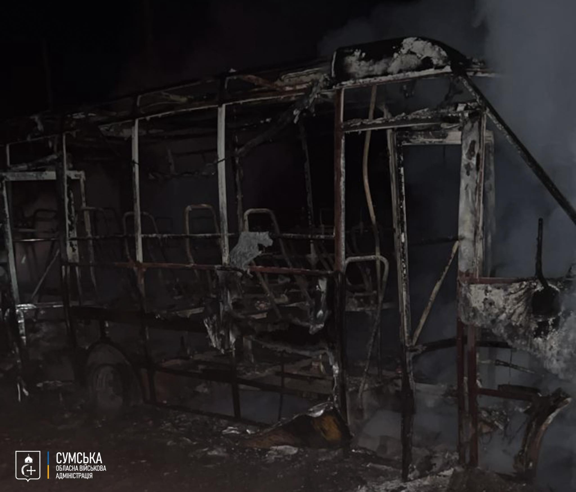 Деталі : Григоров повідомив, що мікроавтобус, який рухався у бік Сум, згорів ущент.