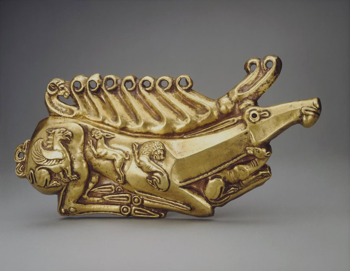 Наступний у нашому списку скарб — унікальний золотий гребінь з воїнами із кургану Солоха, що за 10 км від сучасного Енергодара. Археологи знайшли там також тарілку-фіалу та меч у золотій оправі.